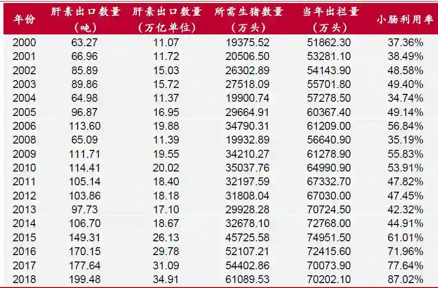 由于猪小肠的利用率已经接近90%,且无其他可替代的肝素生产途径,生猪的供需变化将会显著影响肝素产业。