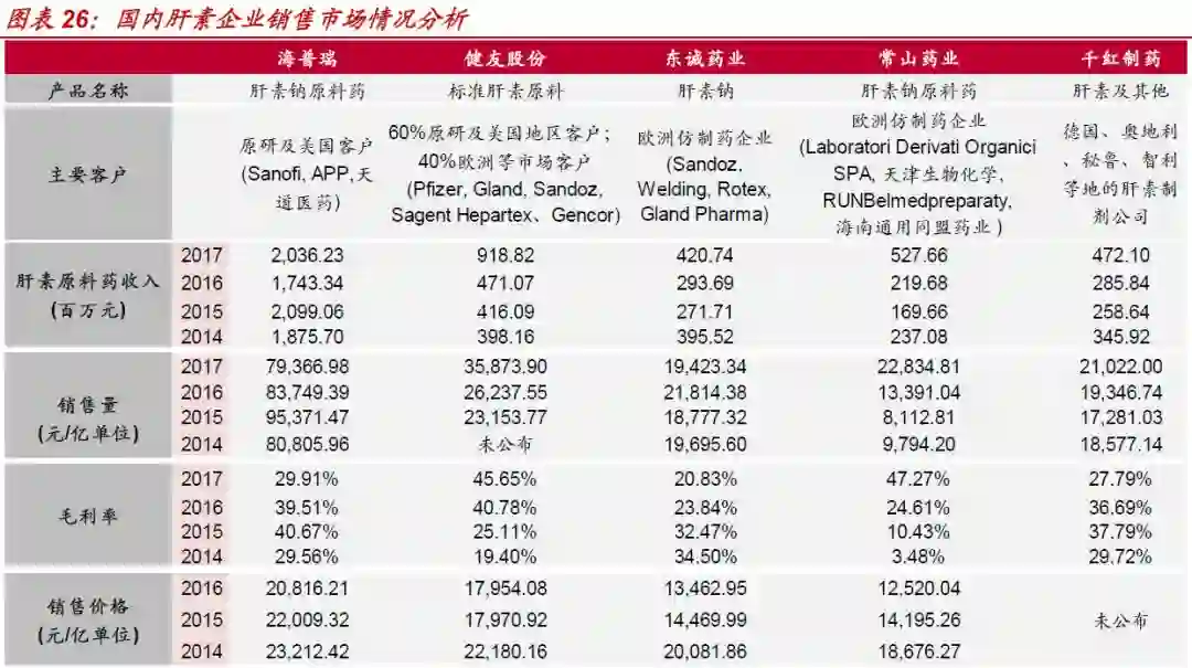 由于中国是全球最大的生猪养殖和屠宰国家,全球肝素原料药的竞争主要在国内各家原料药企业中展开。