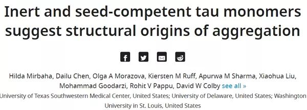 7月10日,《eLife》期刊以“Inert and seed-competent tau monomers suggest structural origins of aggregation”为题发表了这一项突破性成果。来自于德克萨斯大学西南医学中心的O'Donnell大脑研究所的科学家们解析了Tau蛋白在形成更大聚合体之前的“变形记”。这一发现为AD提供了一种新的策略——在Tau蛋白变坏之前将其稳定下来,从而及早诊疗AD。