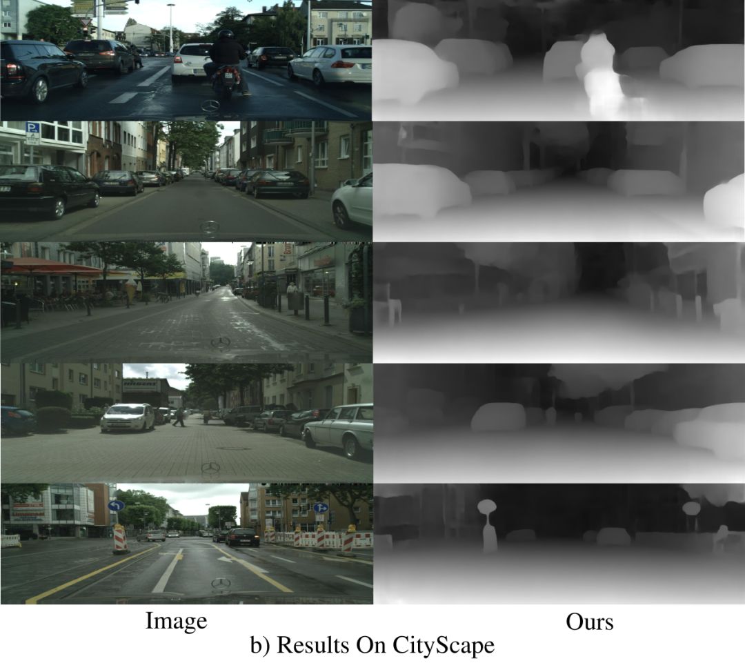 在Cityscape数据集上深度估计结果的可视化