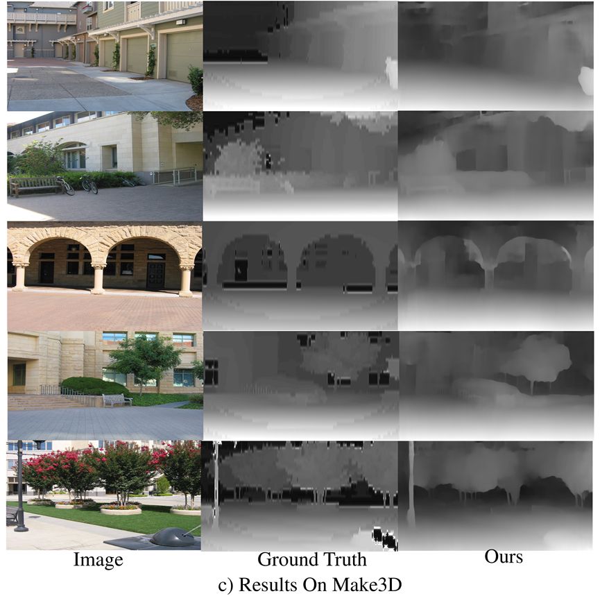 在Make3D数据集上深度估计结果的可视化