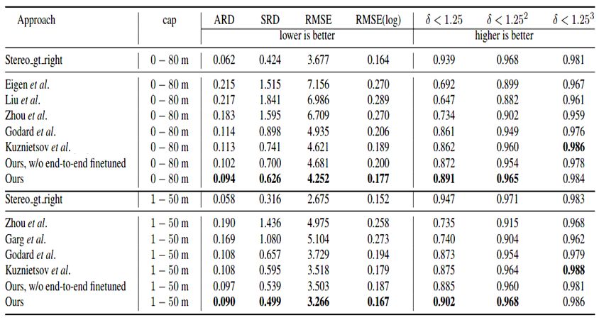 整个模型以端到端的的方式训练,从而提升深度估计准确性。