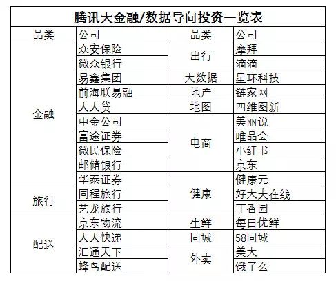 金融是对科技发展非常敏感的行业。因为金融是一个虚拟行业,背后离不开信息、数据和技术的驱动,而无论是金融科技还是腾讯本次大会提出的“智慧金融”,其背后都需要大量的数据作为支撑。据雷锋网不完全统计,在“智慧金融”所涉及的金融、旅行、配送、出行、大数据、地产、地图、电商、健康、生鲜、同城、外卖等可以产生大量数据的行业,腾讯已经进行了多笔重要投资,其中包括微众银行、易鑫集团、微民保险、富途证券、同程艺龙、摩拜(已并入美大)、滴滴、星环科技、京东、新美大等公司,腾讯均为持股靠前的大股东,而这些公司产生的大量用户数据,有很大一部分将在腾讯打造的生态系统中流动燃烧,为“智慧金融”体系提供动力。