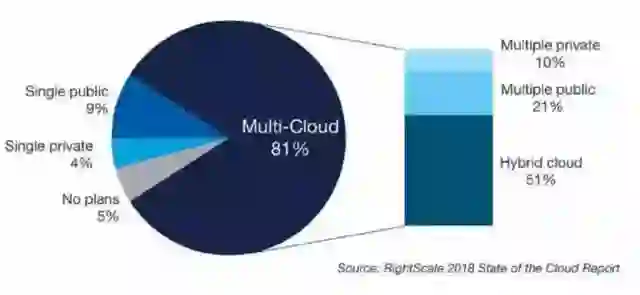 2018年底,AWS正式推出混合云产品AWS Outposts,将AWS引入本地数据中心,标志着即使像AWS这样的公有云云厂商最终还是向用户妥协了。根据RightScale 2018年的统计,采用多云的企业高达81%,采用混合云的企业高达51%,可见用户对将业务放到自有的数据中心中还是有着强烈的需求,云计算一个非常明显的趋势就是走向融合!