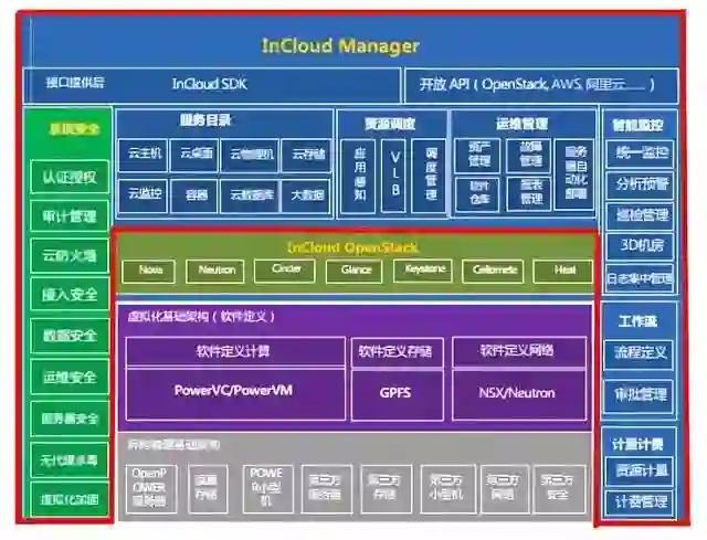 浪潮商用机器推出的云管理平台InCloud Manager(ICM5.0),面向私有云和混合云,提供开发、安全的企业级云数据中心运维管能力,支持vSphere、KVM、PowerVM等多种虚拟化技术的混合部署,支持X86、Power的混合部署。