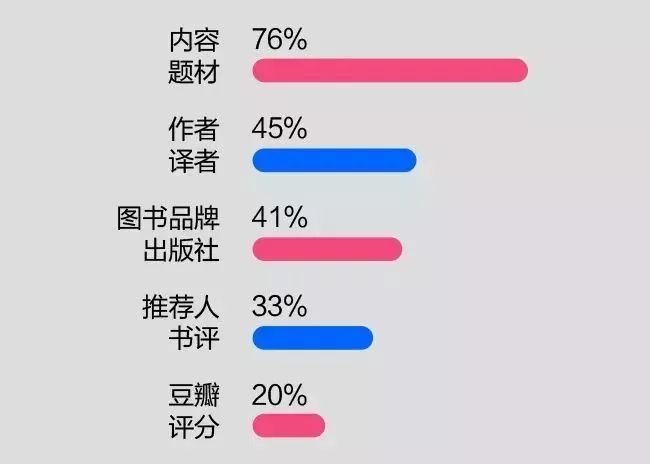 在职场人的眼中,一本书的内容/题材最为重要。只有33%的人在意别人的推荐,20%的人在意豆瓣评分。