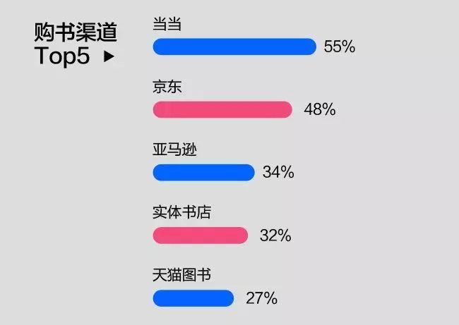 当当网、京东图书、亚马逊图书,三大网络书店成为职场人的购书渠道首选。值得关注的是,也许是纸质书的仪式感,或者是喜欢书店绝佳的学习氛围,实体书店的受欢迎程度依旧很高,紧跟三大网络书店。