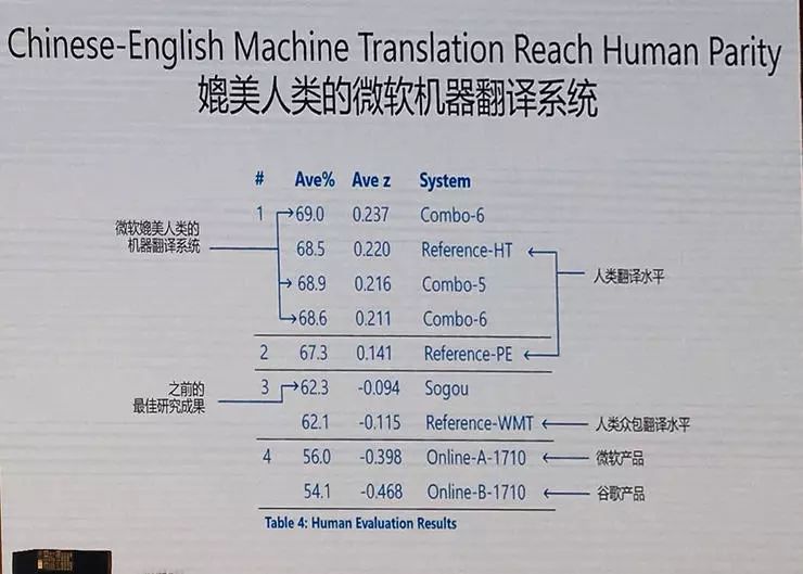 2018年3月,微软在新闻报道测试集的英中、中英机器翻译中,翻译准确率达到69.9%,而人类翻译水平在67.3%-68.5%之间,微软的测试成绩相当于超过了人类水平。