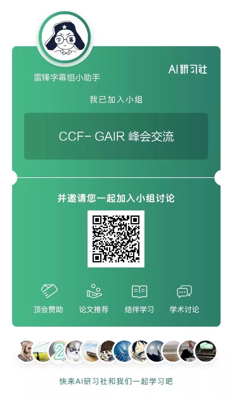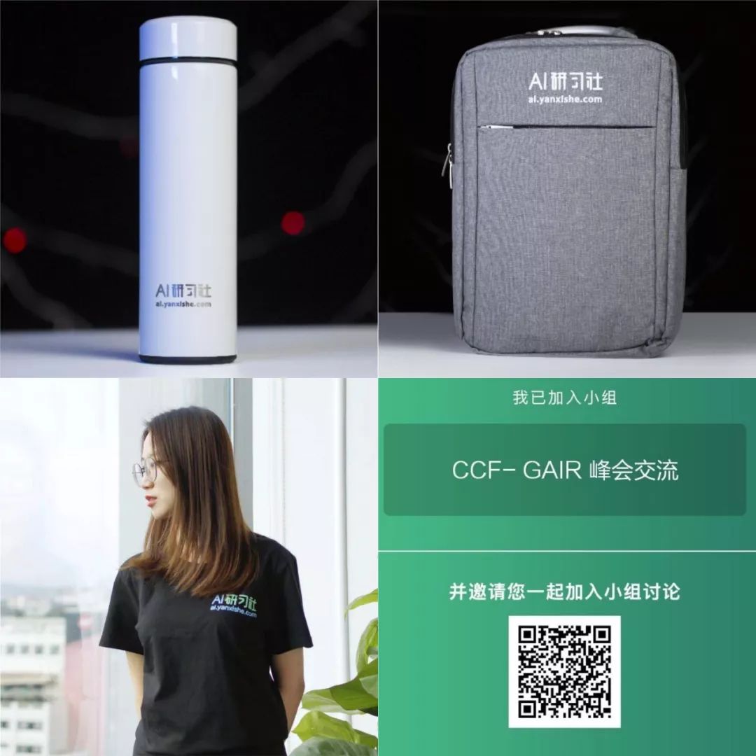 参与方式:加入 AI 研习社的“CCF- GAIR 峰会交流”小组,并且邀请 1 名以上的好友登录 AI 研习社 ai.yanxishe.com 成为社区认证用户并且成功兑票,结伴同行参加 GAIR 峰会,即可直接参加我们的线下学术沙龙活动,除此之外,我们还准备了更多惊喜礼品等着大家。