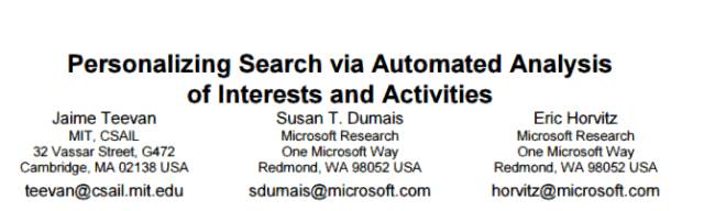 作者:Jaime Teevan、Susan T. Dumais、Eric Horvitz(SIGIR 2005)
