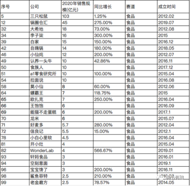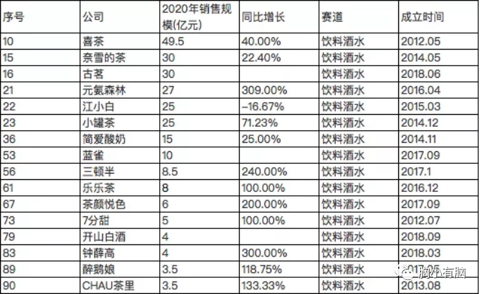 (天猫上2020年一百个表现出色的高增长典型的国货品牌,分别是食品、酒水饮料、美妆、家居赛道)