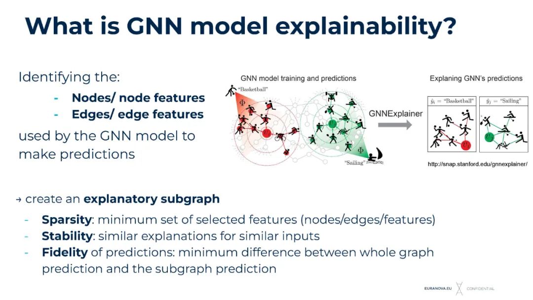 随着时间的推移,从汽车、制药到电子商务和银行,大型网络数据已经在大多数行业中无处不在。尽管最近做出了一些努力,但以有效和可扩展的方式在不断变化的数据上使用时间图神经网络仍然是一项挑战。本次演讲展示了euroanova的研究轨迹之一。我们提供了直接适用于实际用例的相关持续学习方法的概述。由于可解释性已成为值得信赖的AI的核心要素,我们引入了最先进的方法,用于解释节点、链接或图级预测。