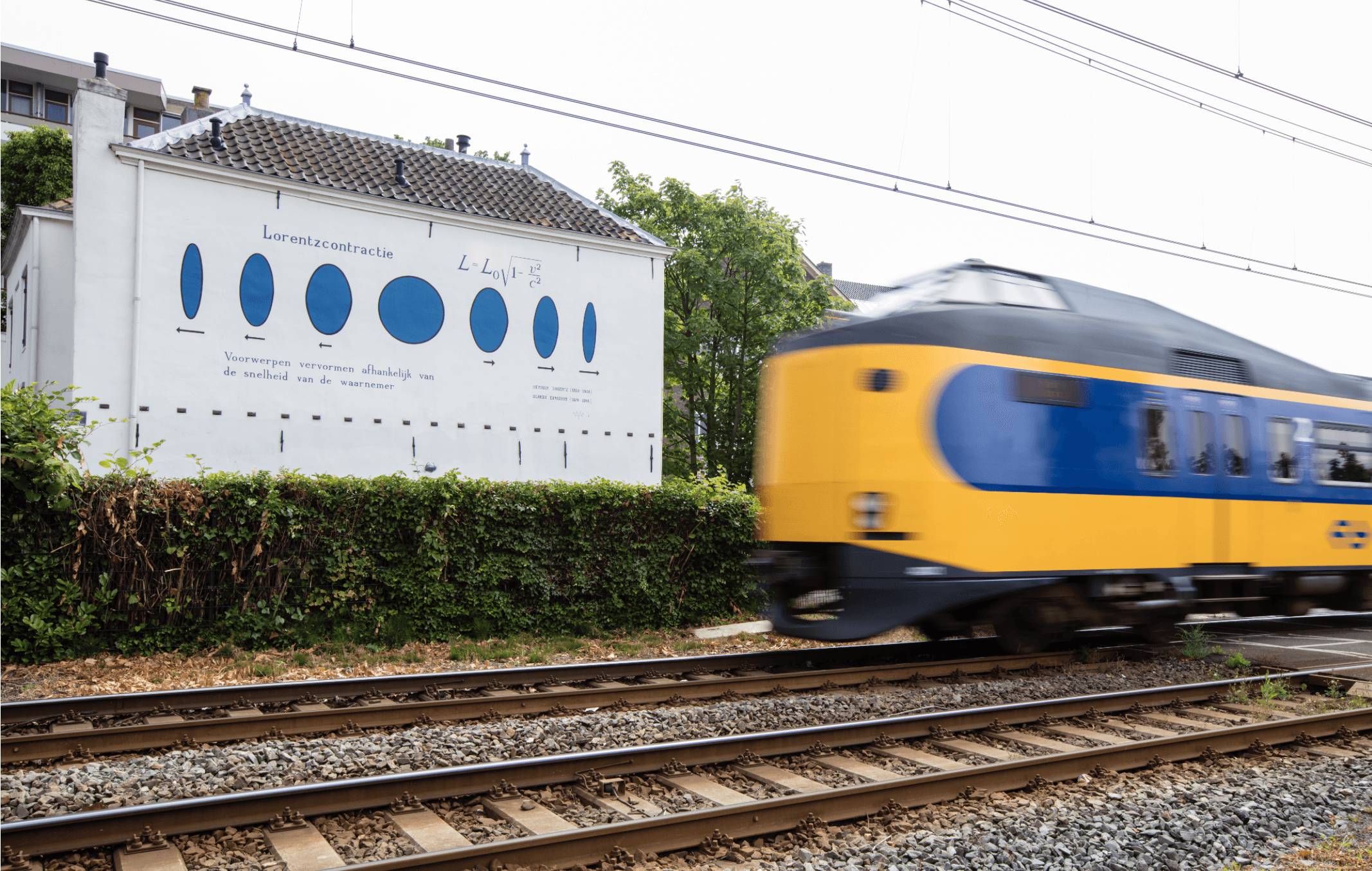 但是,莱顿拥有的不仅仅只是艺术,她还是一座以科学而闻名的小城。这里曾经居住着像洛伦兹、昂内斯、埃伦费斯特、塞曼和惠更斯这样的大科学家。所以,为何不在墙上绘制一些和科学相关的重要公式,为大众提供一些可以思考的精神食粮呢?