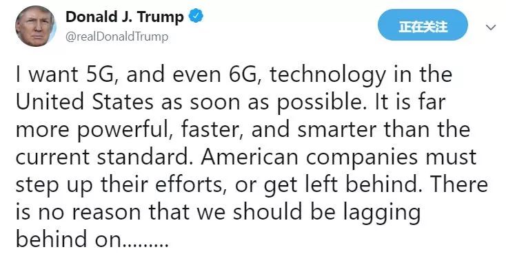 特朗普曾发布推特称,希望不封杀先进技术,5G、6G快点实现。