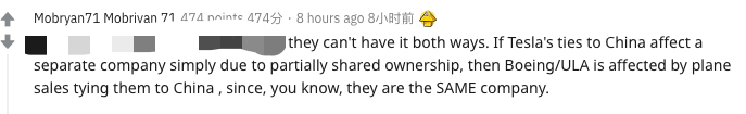 前面我们说了ULA是波音和洛克希德·马丁公司合资的,如果仅仅因为特斯拉在上海建厂,就把SpaceX的合同取消,那波音飞机在中国的销售也难免受挫。
