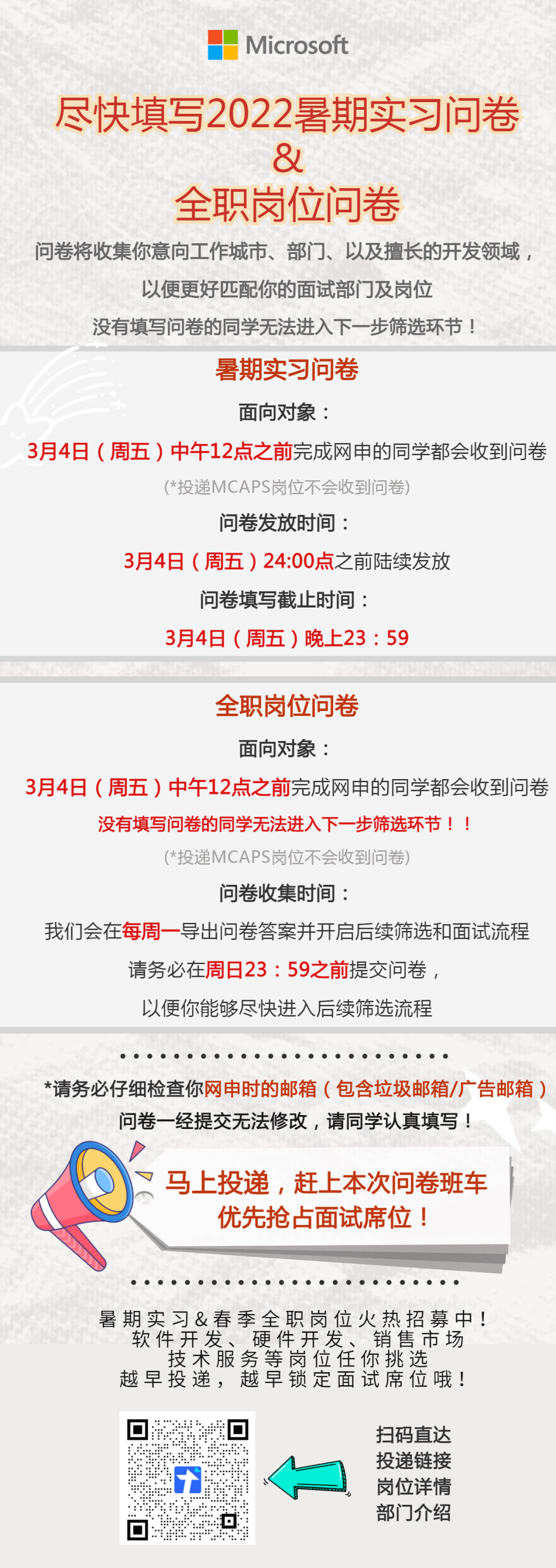 校招丨微软2022暑期实习生研发岗提前批即将上线
