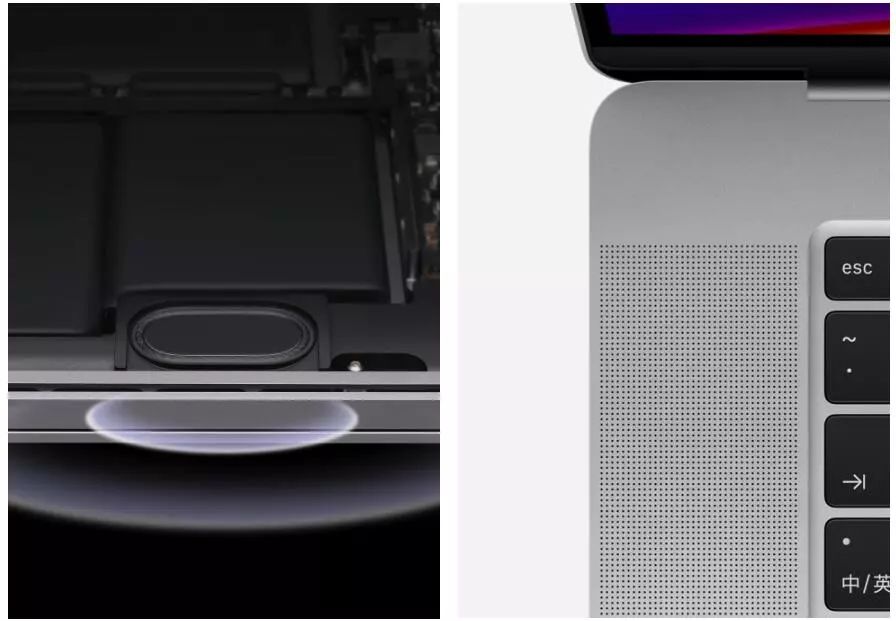 16 英寸 MacBook Pro 采用了彻底重新设计的六扬声器高保真音响系统,为音乐人、播客制作者和视频剪辑师带来 Mac 笔记本电脑上更进一步的音频体验。振动抵消低音单元以新的 Apple 专利技术打造而成,采用两个相对的扬声器驱动单元来减少影响音质的杂音,使最终的音响效果比以往更清晰更自然,还使低音的音域再低半个八度。经升级的高性能麦克风阵列将嘶嘶声降低了 40%,并进一步提升了信噪比,使其几乎可媲美常见的专业级数字麦克风,带来音色纯净的录音作品,甚至能够捕捉极为轻柔的细节。