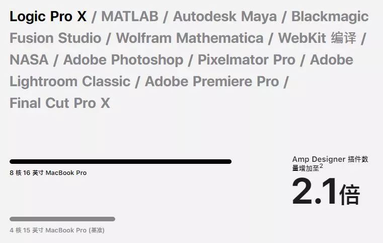 · 音乐制作人在 Logic Pro X 中播放大型多音轨项目,其中 Amp Designer 插件数量最多可增加至 2.1 倍。