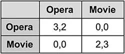 在这里,两名玩家必须协调一个晚上去看歌剧或看电影。其中一人对歌剧有轻微的偏好,另一人对电影有轻微的偏好。这场博弈是不对称的,因为当两个人都选择执行相同的策略时,相应的奖励会根据玩家的喜好而不同。为了维持他们的友谊(或者说均衡),玩家应该选择相同的活动 (分别行动是零回报)。