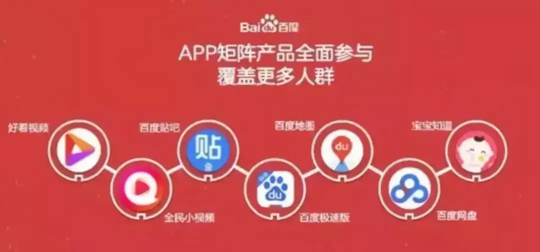 同时,手机百度又成为百度旗下的众多APP的入口,好看视频、全民小视频、看多多等百度产品系数参与,在手机百度里,不但有这些产品LOGO露出,还提供下载奖励和他们地址入口。打个比方,如果手机百度是航母,其他百度产品就像是围在周围的护卫舰矩阵。