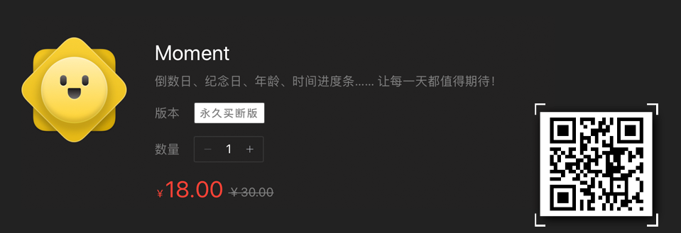 Moment 是 macOS 上的一款倒数日应用,你可以用它来计算距离 deadline 还有多少时间,并将其添加至菜单栏中时刻提醒自己。