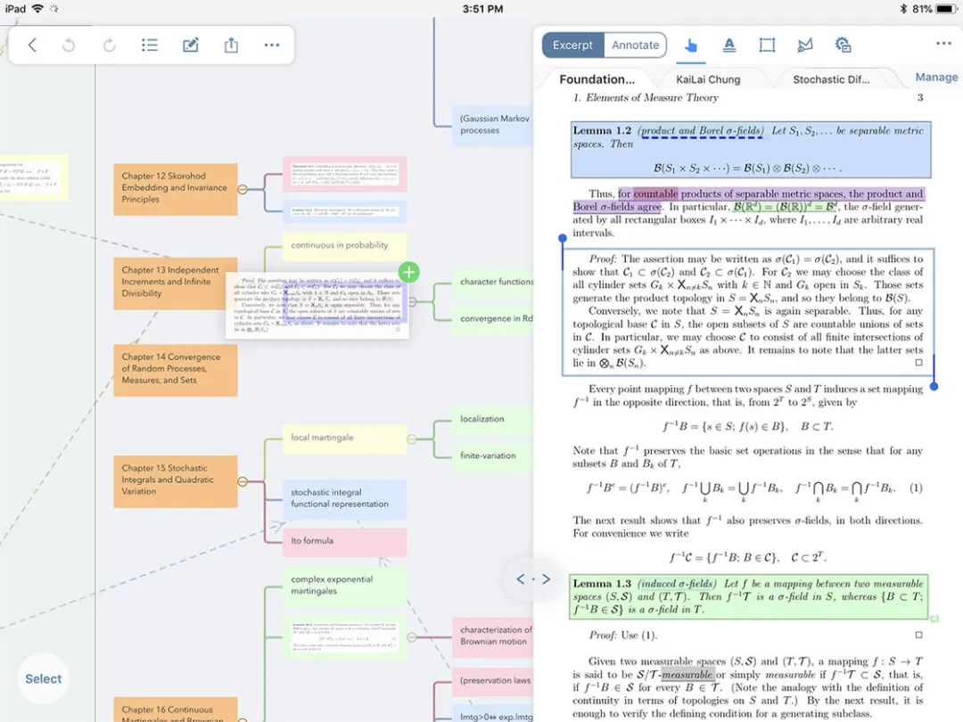 致力于把书「读薄」的 MarginNote 拥有多种不同视图,你可以在文档视图下划出重点,随后在思维导图下来理清它们之间的关系,最后在复习界面将它们消化掉。花点时间适应一下 MarginNote 的逻辑,你也能用它来高效汲取书本里的知识。对于学生党来说,MarginNote 或许能成为你消化知识的得力助手。