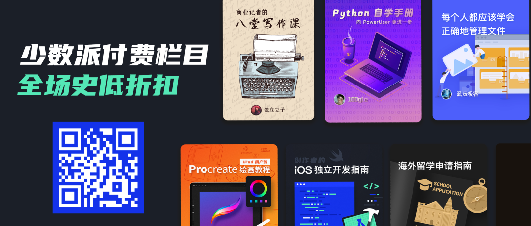 想必你已经厌倦了各电商平台「双十一」活动的各种算法和套路。此次「双十一」,我派付费教程商店简单明了——所有教程(除《英语自学手册》外)均有史低折扣,部分教程低至半价。这是每年为数不多的超级优惠,如果有你喜欢的教程,请记得果断下单。