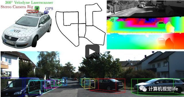 使用一辆改装的汽车采集,该车配备了两台高分辨率彩色和灰度摄像机,还有Velodyne激光扫描仪和GPS定位系统,用来提供精确的groundtruth。主要采集区域是卡尔斯鲁厄市区、农村地区和高速公路。提供测试脚本可以方便的实现量化评估。