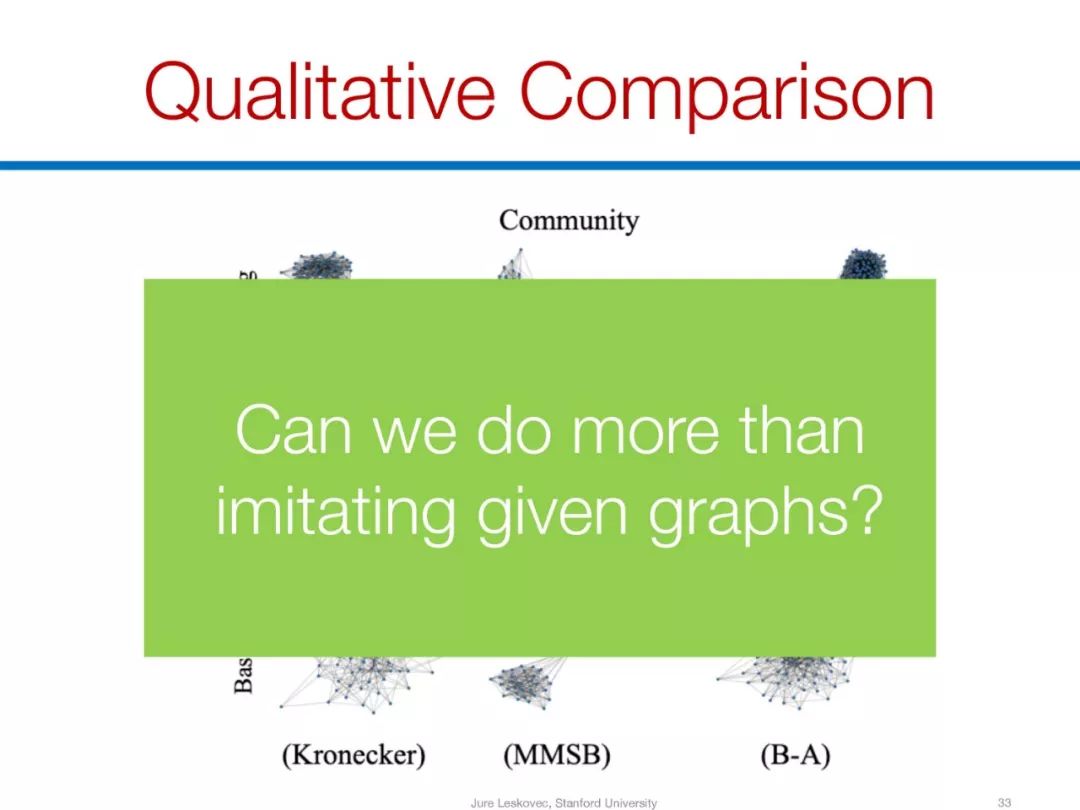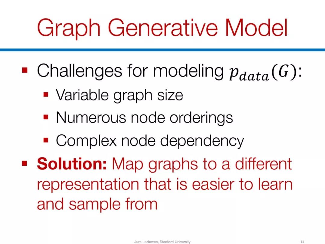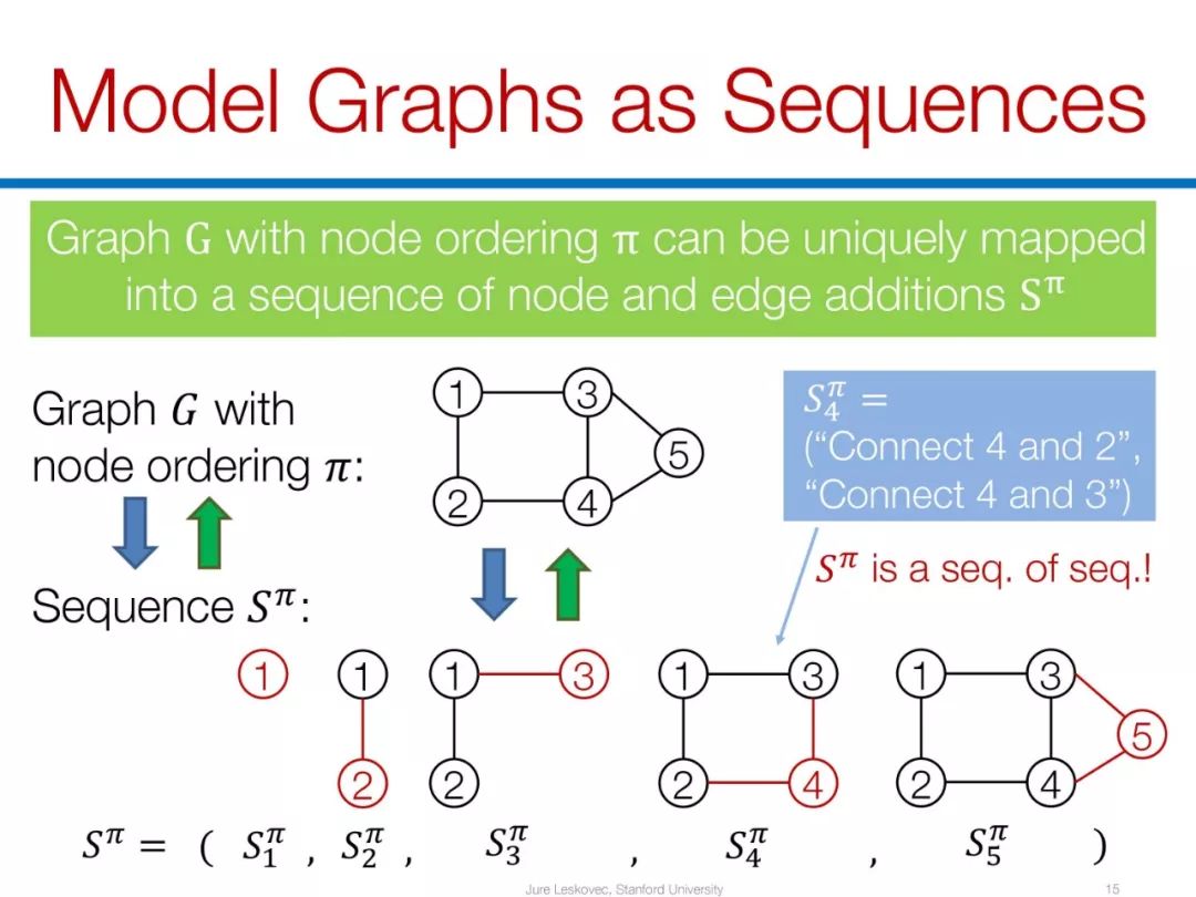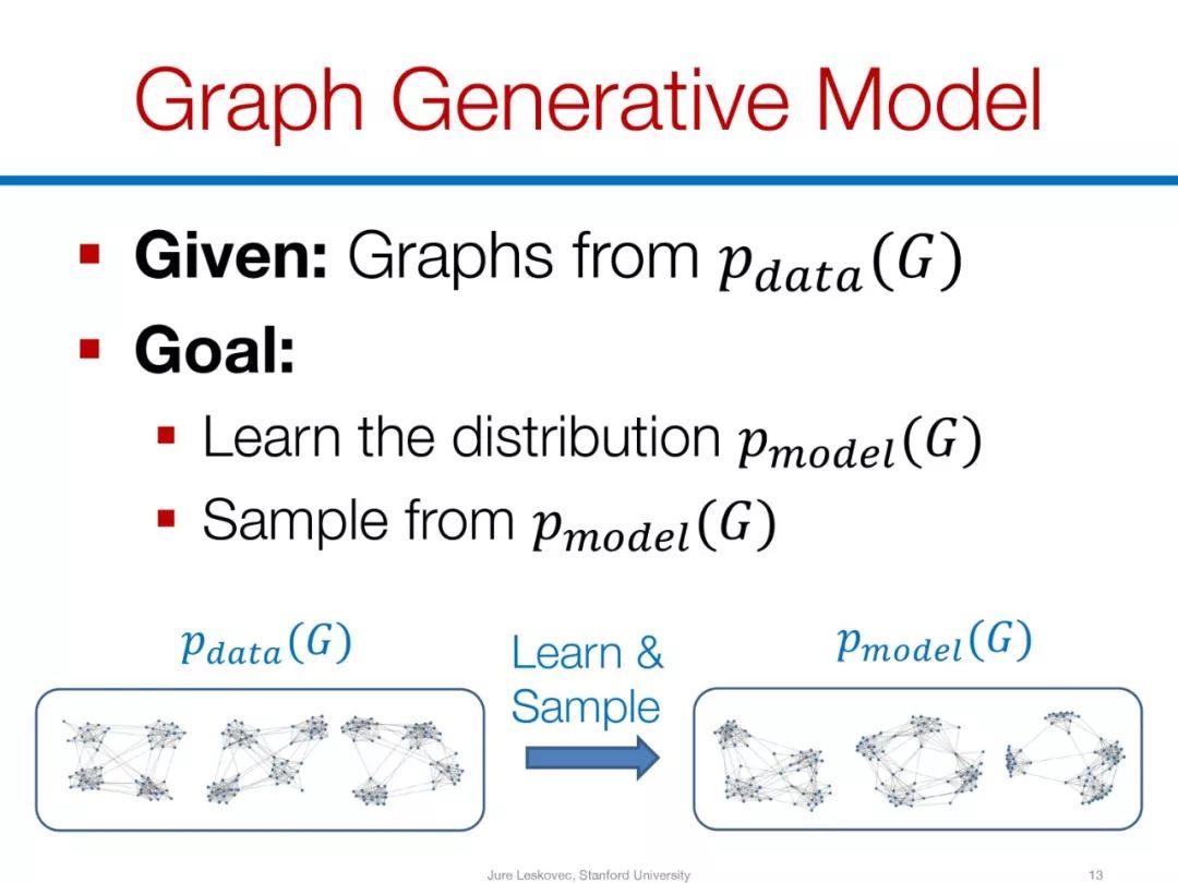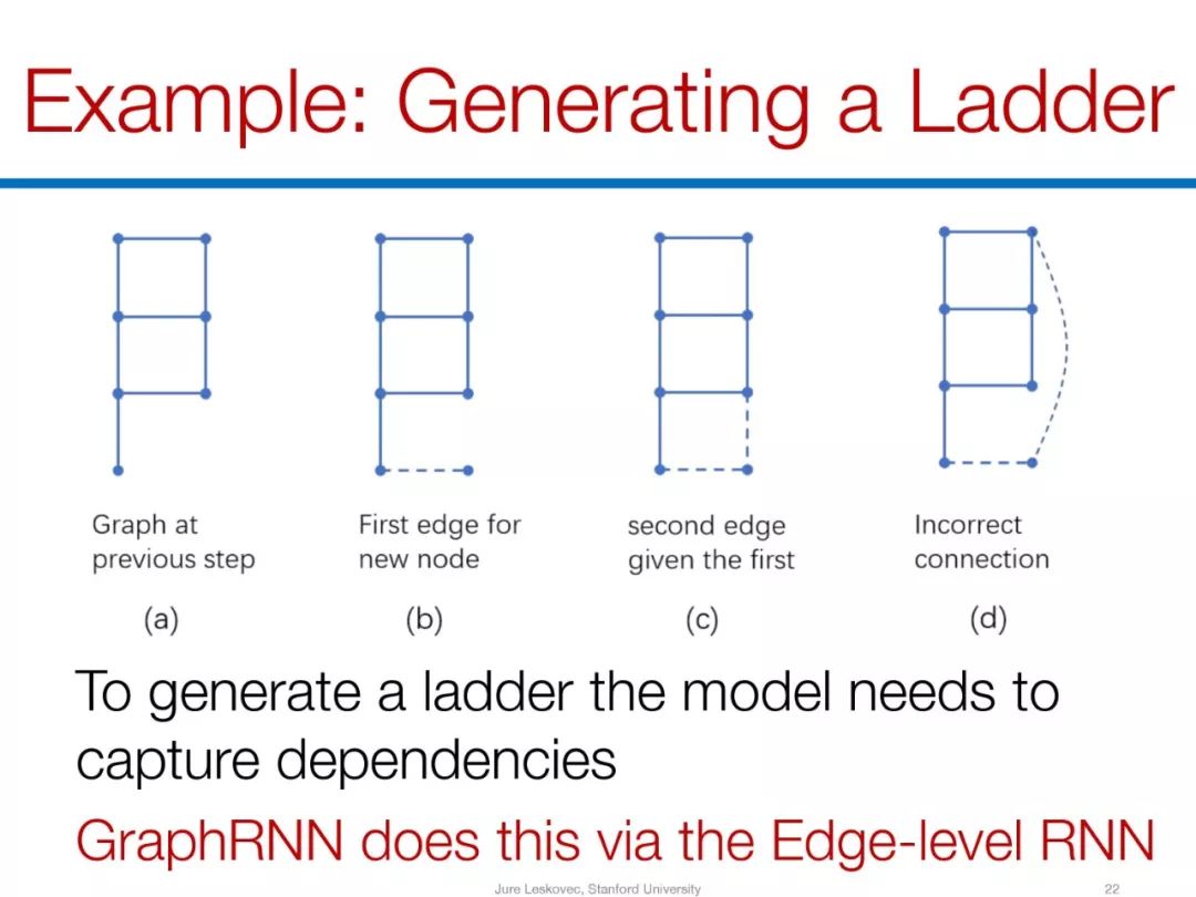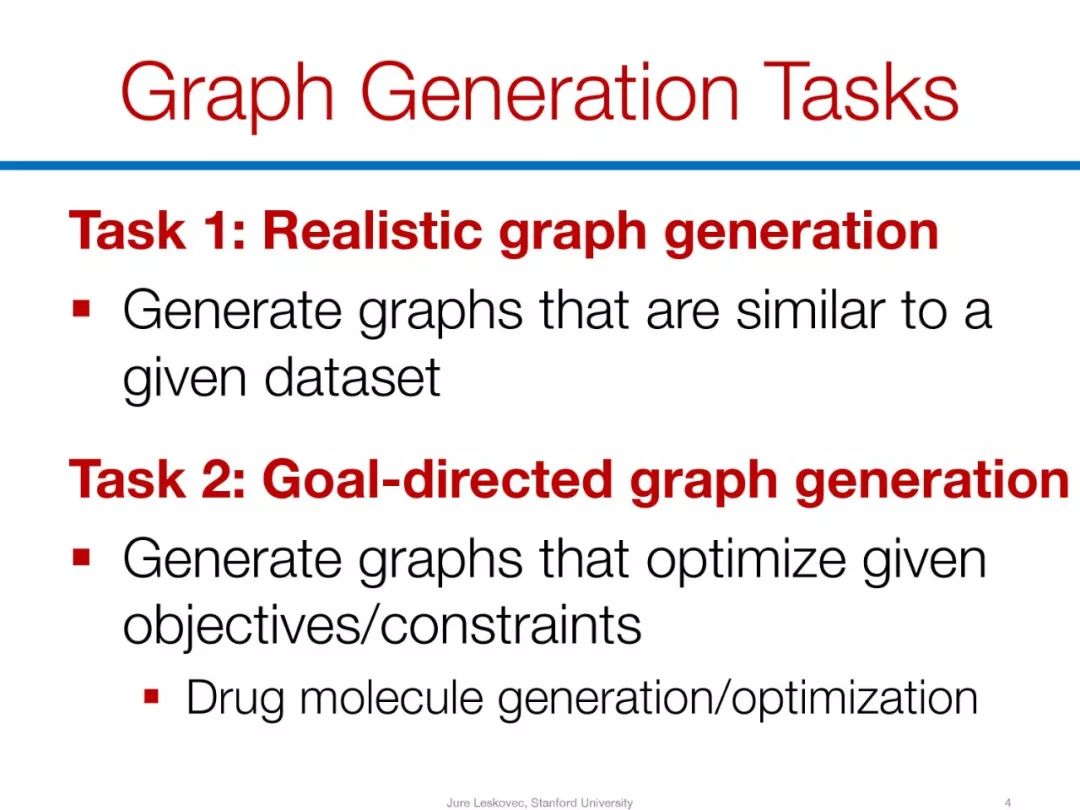 此外,在 ICLR 受邀演讲上,Jure Leskovec 教授还就图深度生成模型做了演讲。在这次演讲中,Jure 阐述了图生成模型的方法和应用,并详细介绍了他的最新成果,GraphRNN 和 Graph Convolutional Policy Network。
