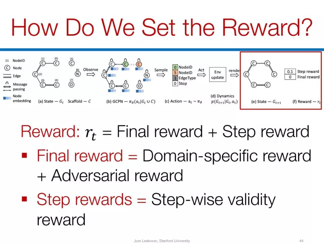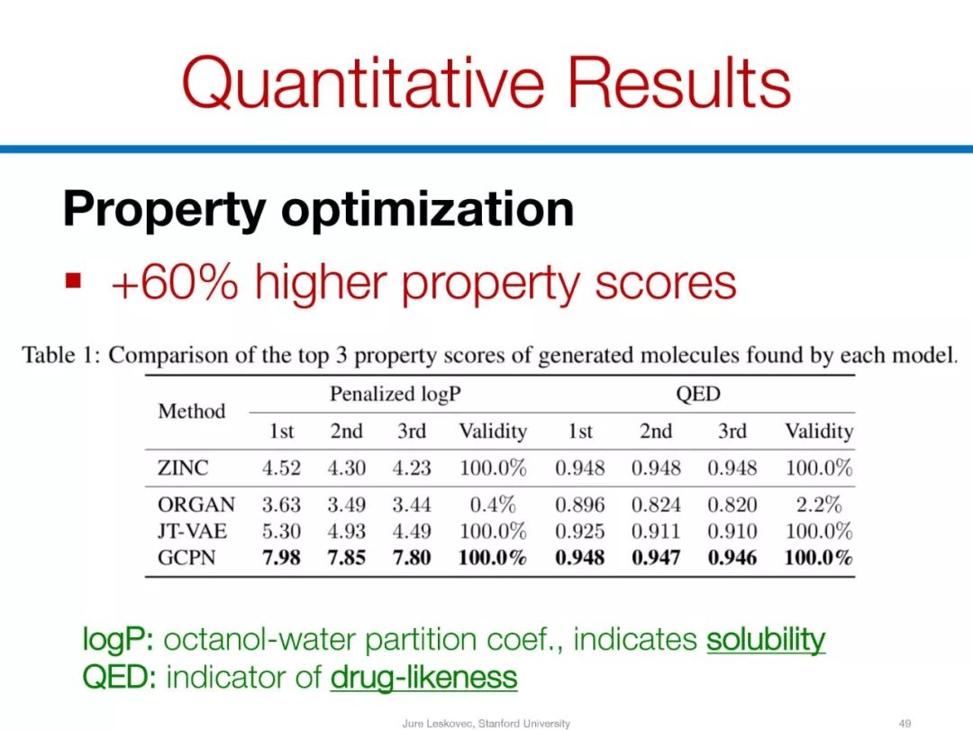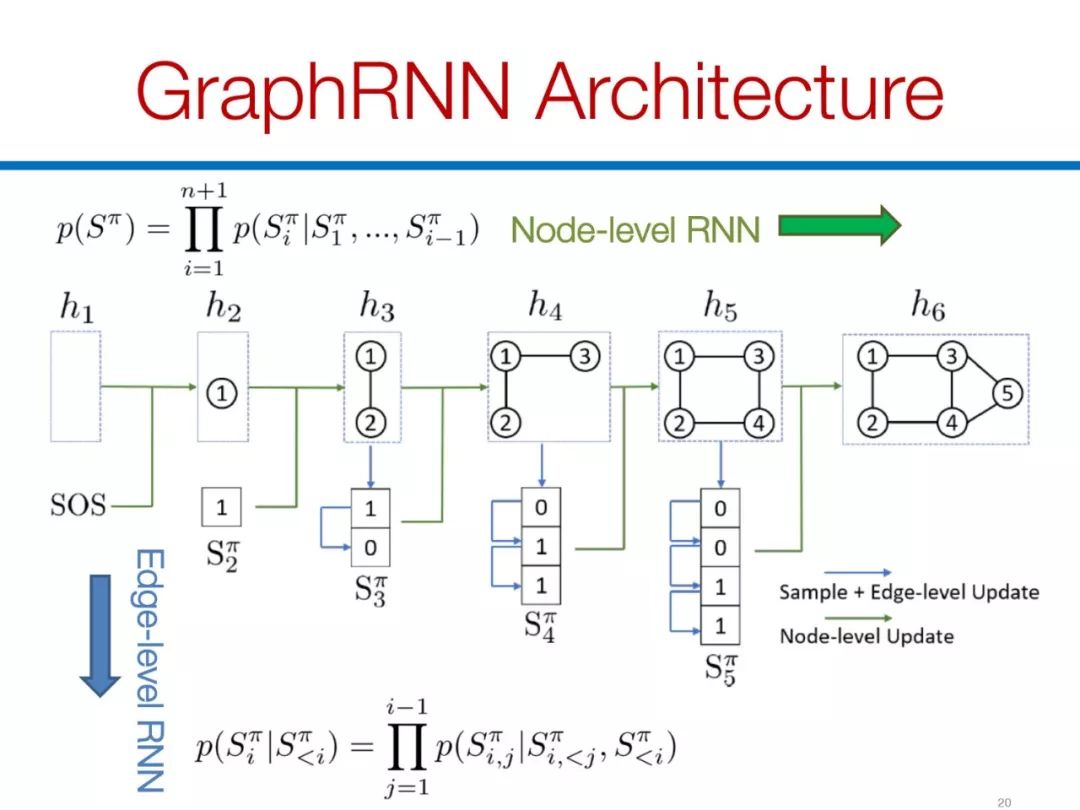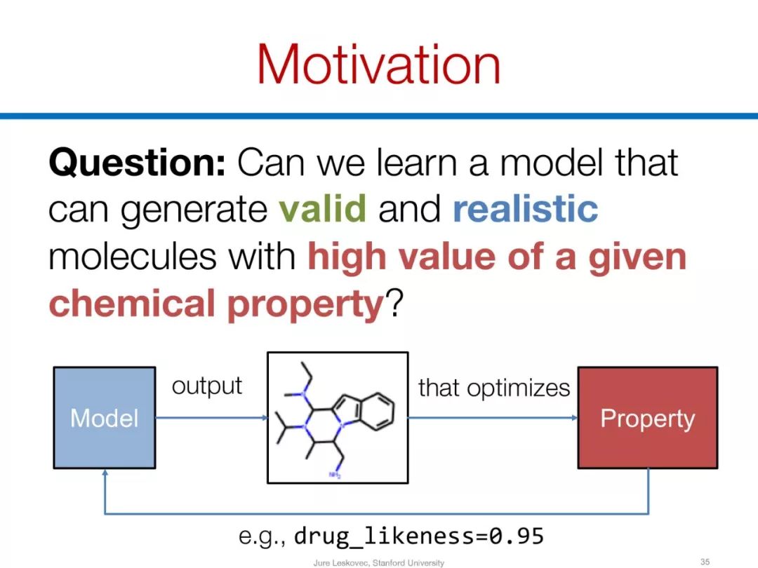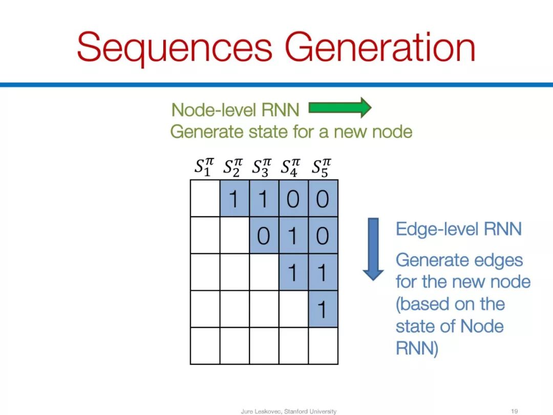 此外,在 ICLR 受邀演讲上,Jure Leskovec 教授还就图深度生成模型做了演讲。在这次演讲中,Jure 阐述了图生成模型的方法和应用,并详细介绍了他的最新成果,GraphRNN 和 Graph Convolutional Policy Network。