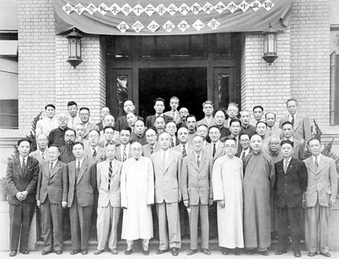 贝时璋(最后排右二)1948年参加国立中央研究院成立第20周年纪念会暨第一次院士会议时与全体院士合影