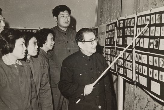 1980年,贝时璋在给研究人员讲解细胞重建图片