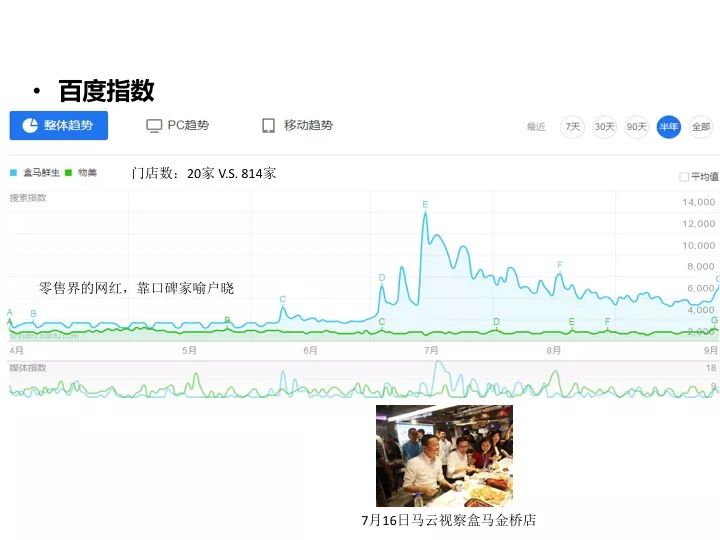 借助线下吸引顾客,线上下单配送的流量模式创新,在“好”与“快”两个要点上赢得口碑,成为异军突起的新零售典型。