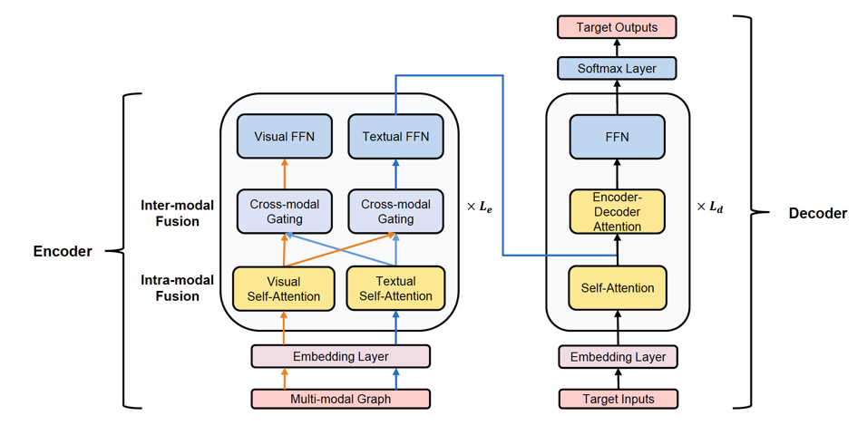 多模态的特征经过多跳交互后,会通过一个注意力机制进行模态融合,最后输入到解码器里生成对话回复。