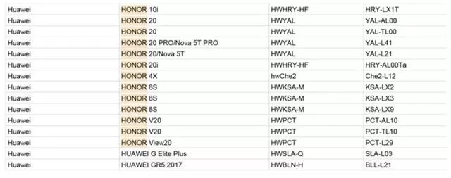 根据这份名单内容显示,最新发布的荣耀20、荣耀20 PRO手机也将支持Google Play服务,另外还有名为nova 5T、nova 5T PRO的设备也位列其中。