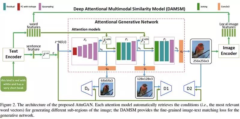 Attentional Generative Adversarial Network有两个新颖的组件:Attentional generative network和深度Attentional多模态相似度模型(DAMSM)。