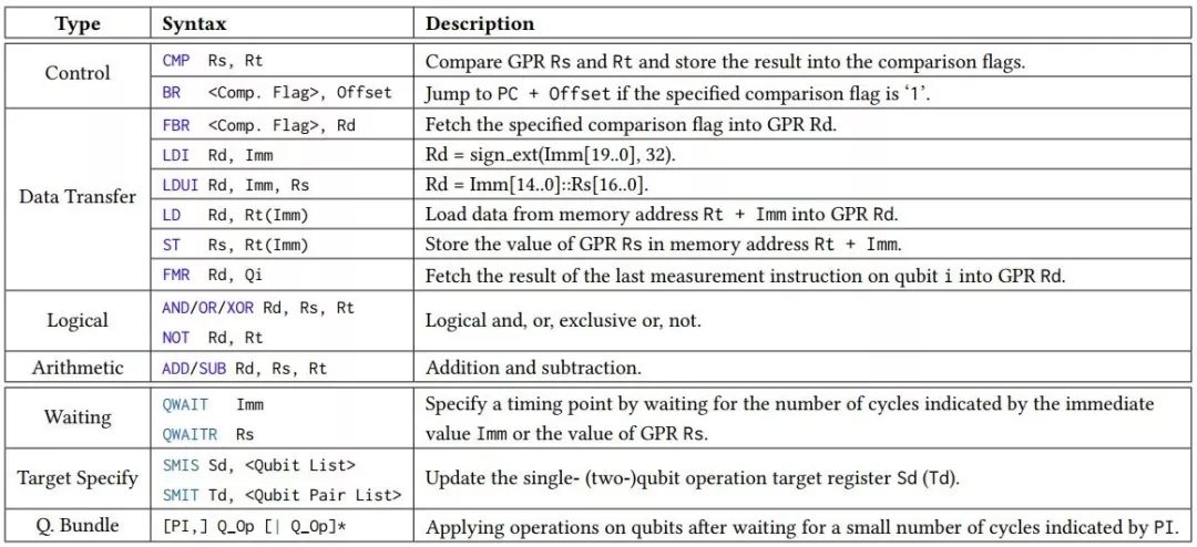 表 1:eQASM 指令概览