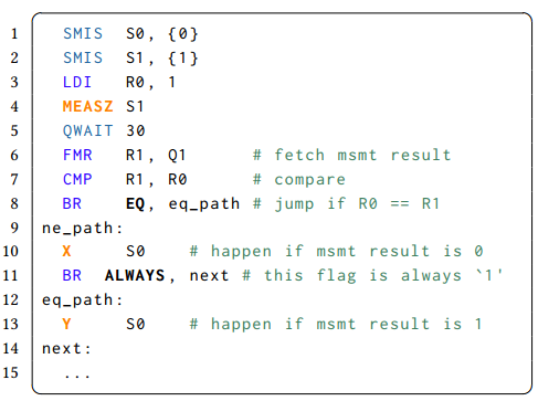 eQASM 应该包含经典指令,以支持运行时反馈等量子程序流控制。