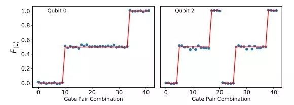 文章首先利用图 3 中的代码执行了一个两比特 AllXY 实验,实验结果如图 11。该实验中,测量结果(蓝点)与预期结果(红线)的吻合表明 eQASM 能够实现对量子操作的精确控制。