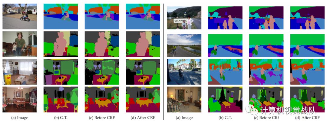 使用atrous卷积层提高特征分辨率,这样可以每8个像素计算一个特征响应,之后双向性插值上采样8倍到原始图像分辨率,输入到CRF精修分割结果。