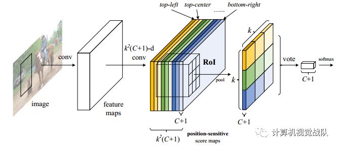 上图示基于区域的全卷积框架图,而且这也是第一次用于目标检测的全卷积网络,最后的效果得到了很好的效果
