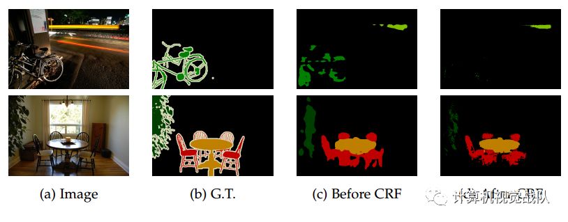 提出的模型无法捕捉物体的精细边界,例如自行车和椅子。我们假设有些文献的编解码结构可以通过利用解码器路径中的高分辨率特征映射来缓解这一问题。