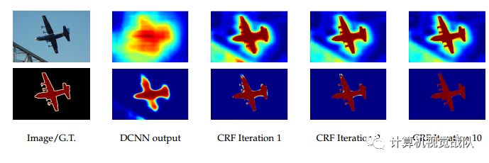 DCNN的不变性,导致定位准确率下降。基于对象的分类器要求对形变不变,影响了分割准确性,hpyer-column有被用来消除这个问题。作者使用全连接的条件随机场(CRF)获取细节信息。CRF被广泛用于语义分割,通过组合多路低层次分类器的信息,如边缘,superpixels等。CRF用于增强边缘信息示意图: