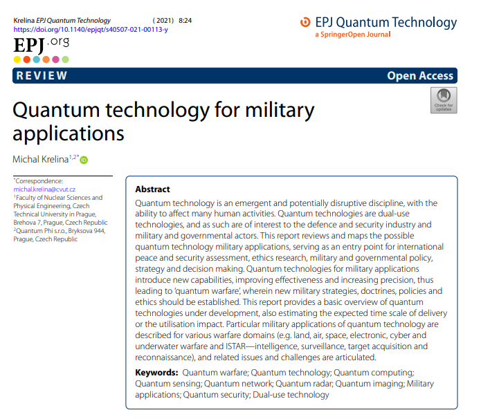 尽管第四代现代战争的特点是分散化和国家对战争失去垄断[1,2],但先进国家军队的特点是可以使用最先进的军事技术。这包括即将出现的量子技术。