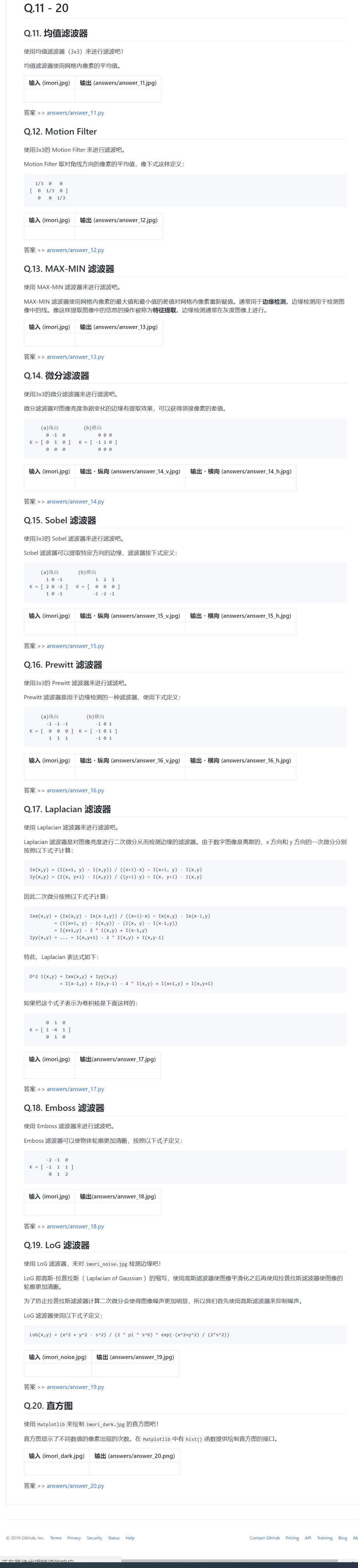 本文整理了图像处理初学者应该需要了解的100个基础问题,涉及读取、显示图像、操作像素、拷贝图像、保存图像、灰度化(Grayscale)、二值化(Thresholding)、大津算法、HSV 变换、减色处理、平均池化(Average Pooling)、最大池化(Max Pooling)、高斯滤波(Gaussian Filter)、中值滤波(Median filter)、仿射变换(Afine Transformations)等100多个知识点。