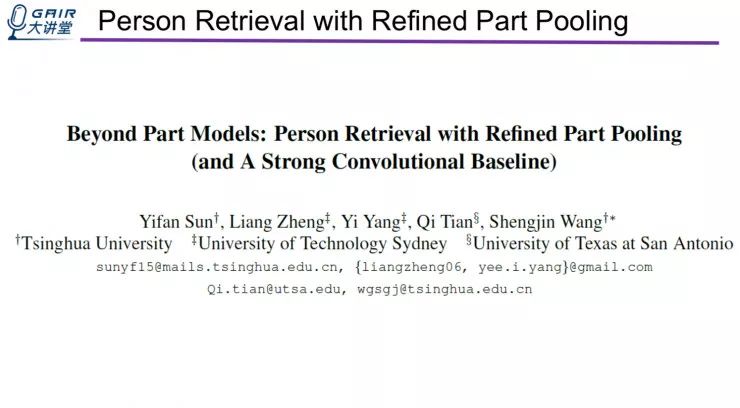 arXiv上有一些最新研究是如何提高当前已经非常高(甚至可以说是超越了人类水准)的一个水平的,例如在market-1501上到一选准确率达到了90%~95%的区间。这里介绍三篇paper,他们有一些共同点,他们都使用了part model来提取部件级别的特征,但他们在如何产生part这个核心问题上所采用的策略又是完全不一样的。感兴趣的同学可以找来看一看。