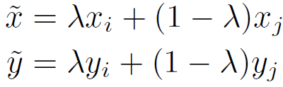 其中(xi,yi)和(xj,yj)是从我们的训练数据中随机抽取的两个样本,且λ∈[0,1]。因此,mixup通过结合先验知识,即特征向量的线性插值应该导致相关目标的线性插值,来扩展训练分布。Mixup在很少的几行代码中就可以得以实施,并且引入了最少的计算开销。