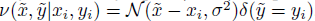 这里,v是一个邻域分布,用来表示在训练特征-目标对(xi,yi)邻域上寻找到虚构特征-目标对的概率。特别地,Chapelle等人考虑高斯邻域