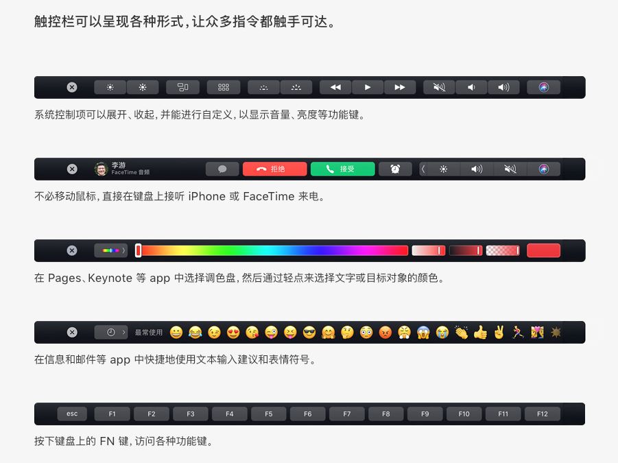 是的,对应10项固定功能,没有任何可自定义的拓展性,写死的。相比之下,苹果Macbook Pro的touchbar是怎么做的呢?在键盘上方集成了一块触摸屏,系统级的快捷键支持用户自定义,同时,支持应用软件进行适配,不同软件窗口展示不同快捷操作内容,这是大公司做平台的思路,需要操作系统软件、设备硬件、IDE开发工具等一整套支持,就这样依然被用户吐槽没什么卵用。