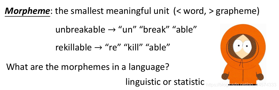 直接输出词,对于很多语言来说,词有很多,如中文,常用字较少,但词可谓无数Morpheme:the smallest meaningful unit (<word,>grapheme) 词素(有意义的词根及其扩展)